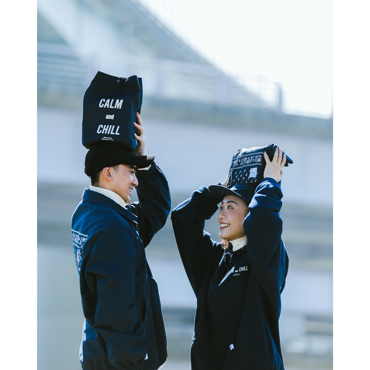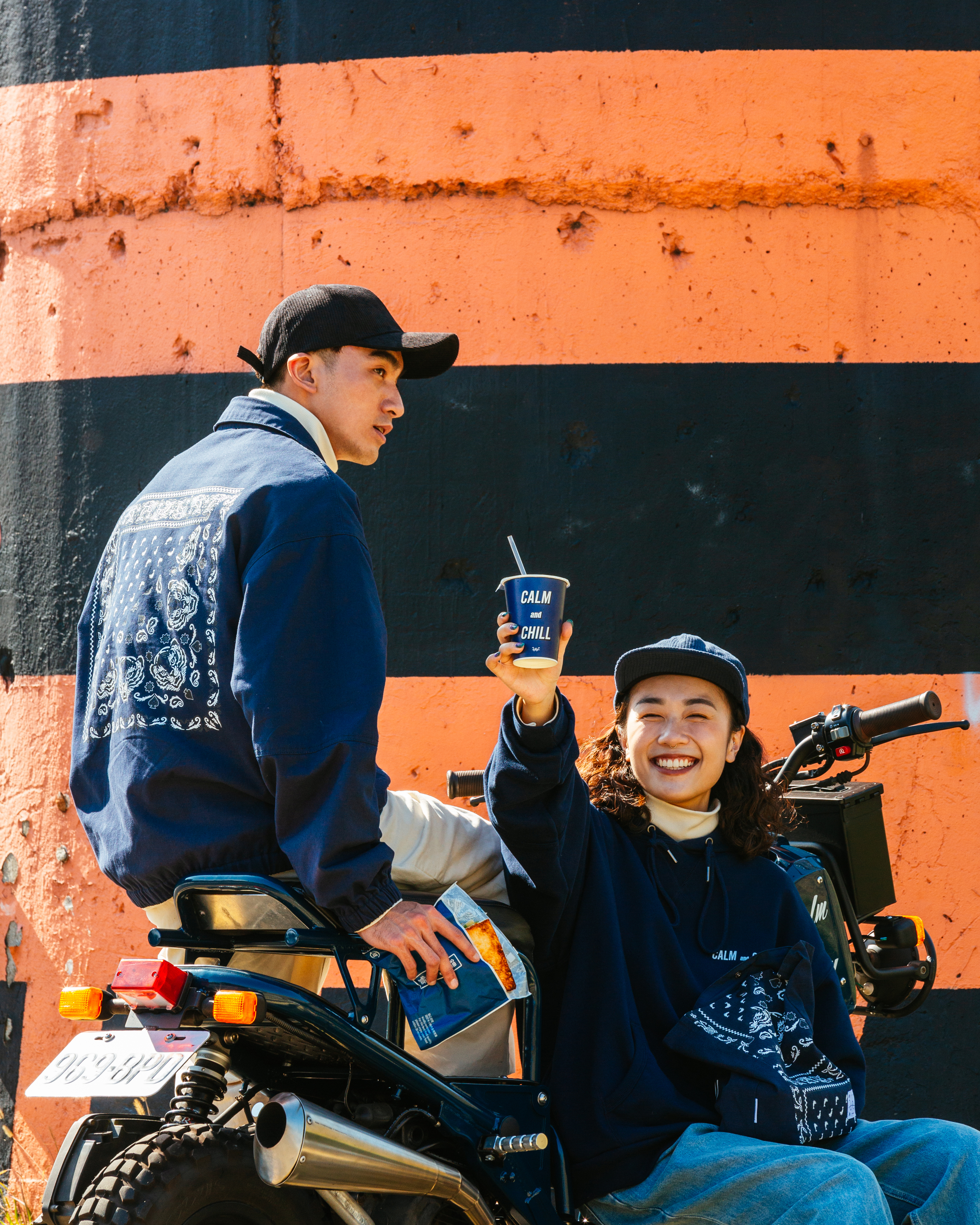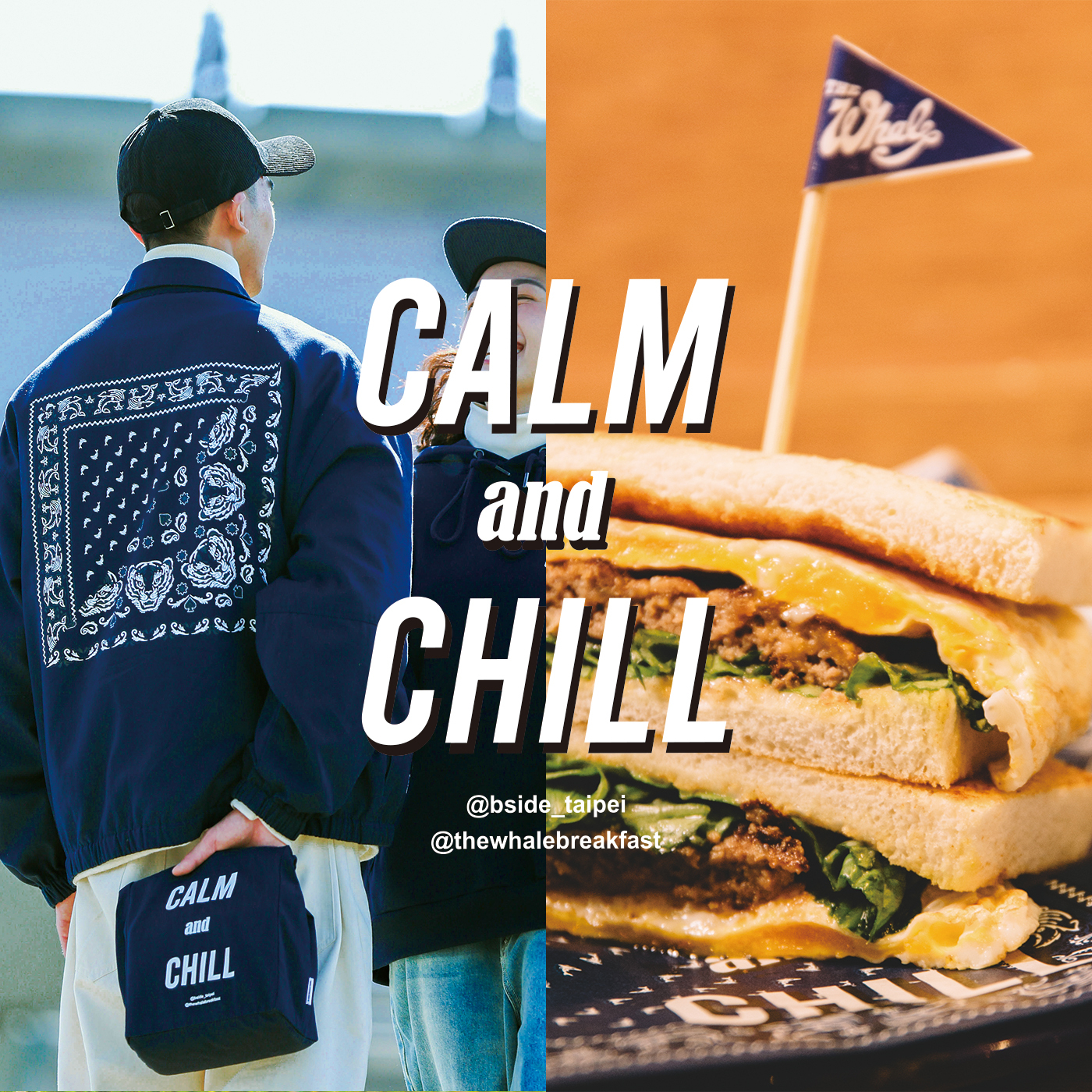 本次聯名系列建立在 B-SIDE 因應疫情期間所推出的「CALM 冷靜」標語以及 THE WHALE 餵我早餐概念的「CHILL 放鬆」,將雙方品牌各自具代表性的老虎以及鯨魚圖像配合變形蟲圖騰構築出主視覺樣式,選擇了沈穩的海軍藍作為主要配色。