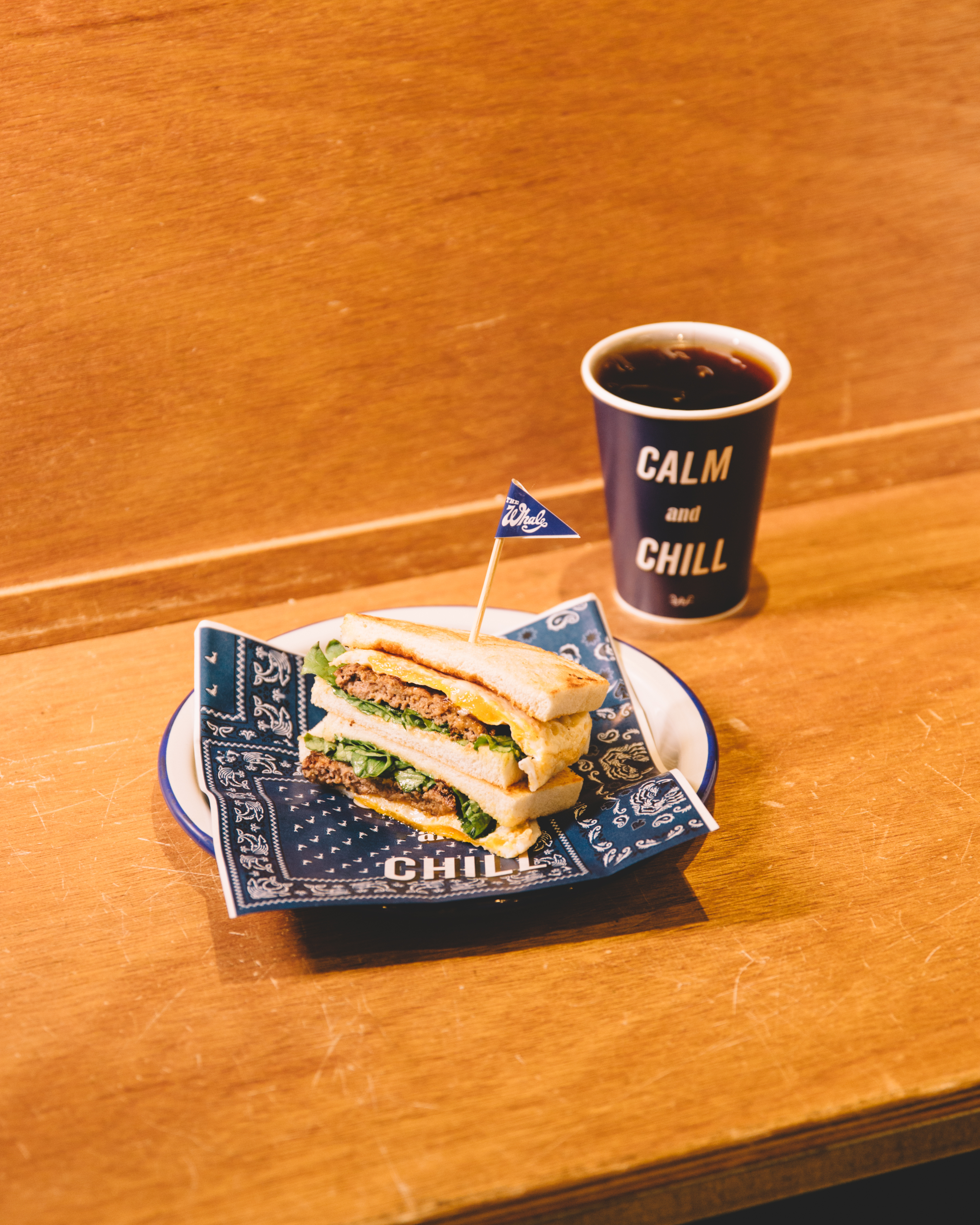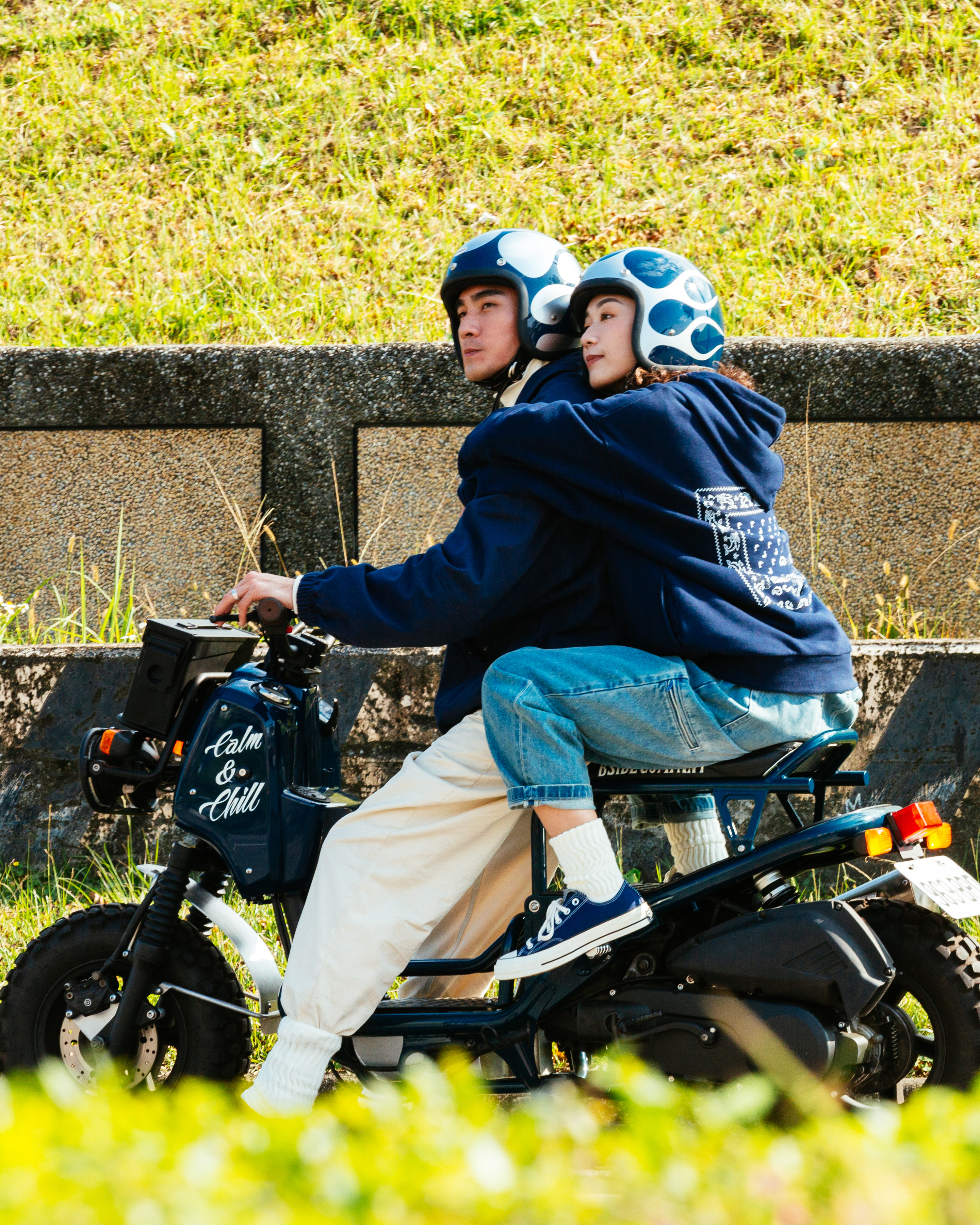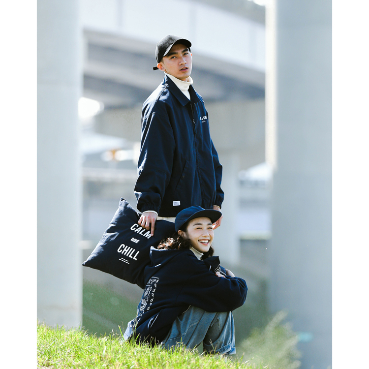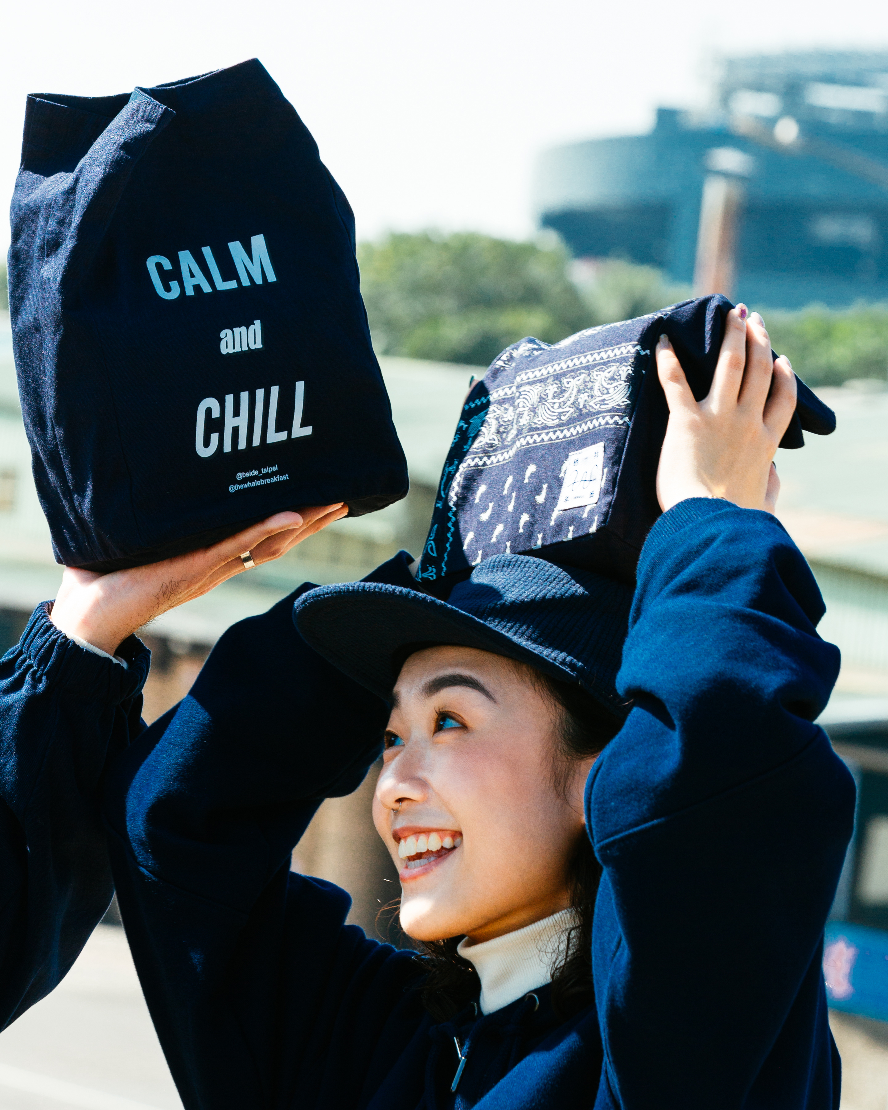本次聯名系列建立在 B-SIDE 因應疫情期間所推出的「CALM 冷靜」標語以及 THE WHALE 餵我早餐概念的「CHILL 放鬆」,將雙方品牌各自具代表性的老虎以及鯨魚圖像配合變形蟲圖騰構築出主視覺樣式,選擇了沈穩的海軍藍作為主要配色。